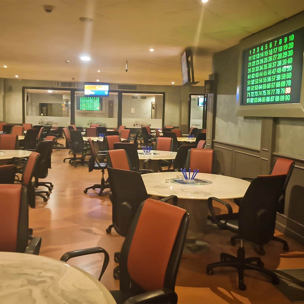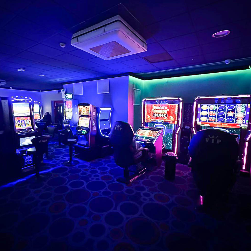 Sala bingo con 260 posti a sedere in area fumatori e non fumatori. Sala giochi SLOT & VLT dotata di area fumatori, con all’interno 32 apparecchi vlt e 15 apparecchi slot comma 6a.
