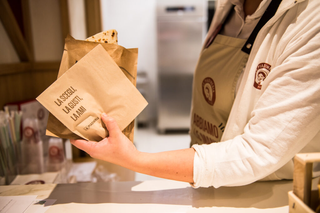 La formula proposta nei punti vendita a marchio “La Piadineria” si basa sull’offerta di oltre 30 tipologie di piadina, preparate con un impasto fresco, interamente prodotto nello stabilimento di Montirone (BS). Le piadine sono cotte e farcite al momento secondo la richiesta del cliente, con ingredienti sempre freschi acquistati da fornitori italiani per garantire la massima qualità del prodotto. Lasciatevi tentare dalle nostre ricette oppure create la vostra piadina personalizzandola secondo i vostri gusti